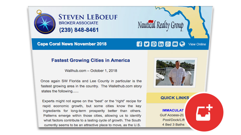 When you are looking at Cape Coral real estate, especially Cape Coral waterfront property or new construction, don’t give your business to just anyone. Get the results you want by learning the facts before you buy. Hire Steven LeBoeuf, Broker Associate—a Realtor who works hard to provide you with the tools that make your search successful. Steven will assure that you receive the highest level of integrity and service, while he assists you in reaching your real estate goals.